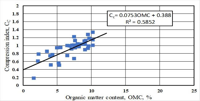 Fig. 6. Correlation between compression index and organic matter content