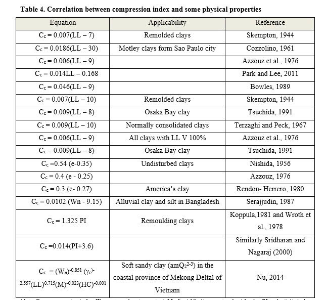 - The compression index has high correlation with liquid limit, moisture content and void ratio. The increase in water content, void ratio, liquid limit resulted in increase in compression index.