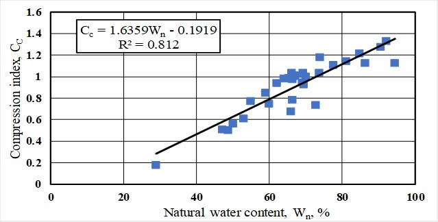 Fig. 7. Correlation between compression index and natural water content