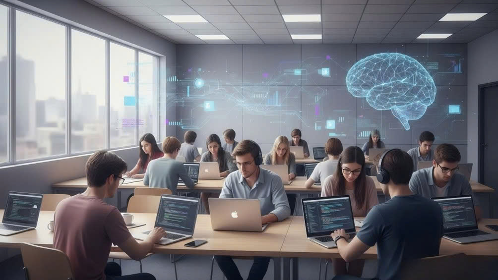 Figure 1: Engineering and Technology Students in an AI-Integrated Learning Environment with Modern Digital Systems